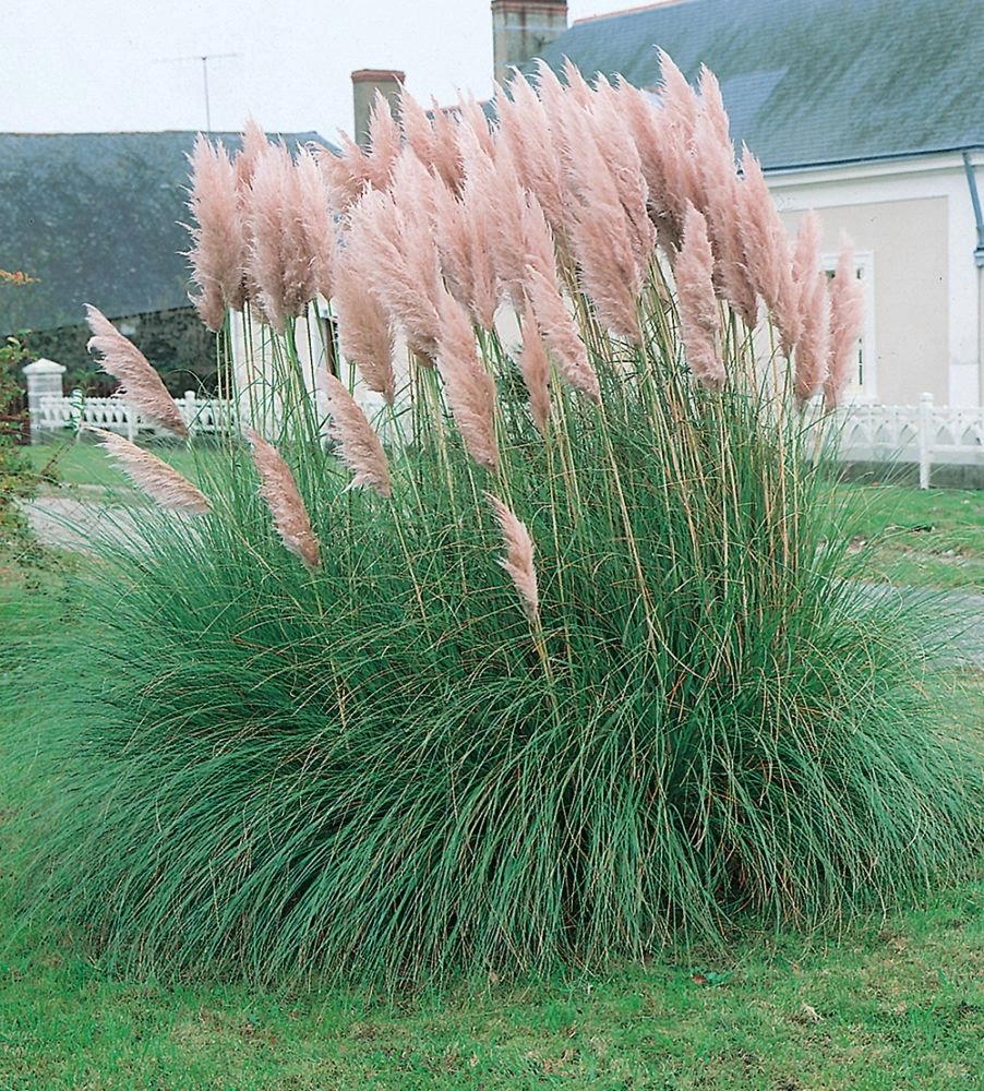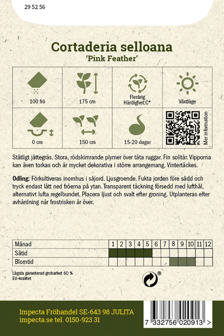 Cortaderia selloanaStåtligt jättegräs. Stora, rödskimrande plymer över täta ruggar. Fin solitär. Vipporna kan även torkas och är mycket dekorativa i större arra