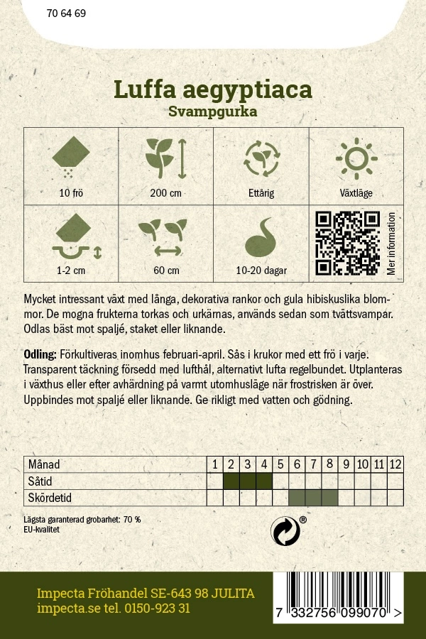 Luffa aegyptiacaMycket intressant växt med långa, dekorativa rankor och gula hibiskuslika blommor. De mogna frukterna torkas och urkärnas, används sedan som tvä