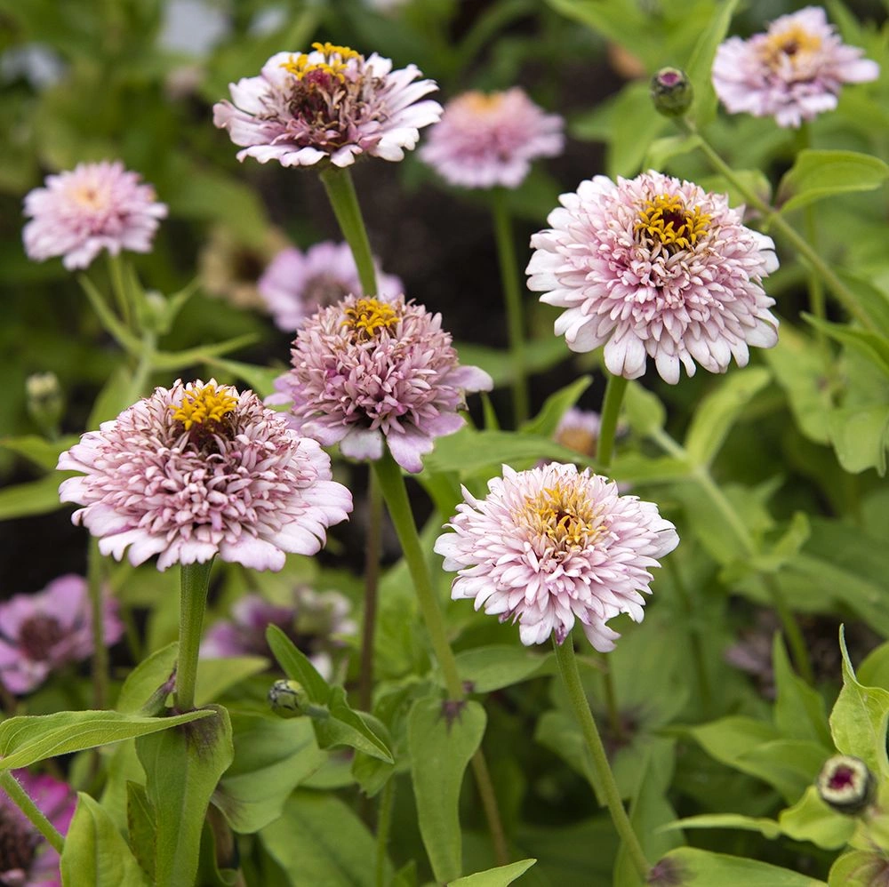 Spektakulära, väddlika, dubbla blommor i mjukt syrenlila till rosa på stadiga stjälkar. Lång och hållbar blom, ypperlig för rabatt och snittblomsodling.