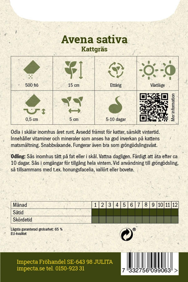 Avena sativaOdla i skålar inomhus året runt. Avsedd främst för katter, särskilt vintertid. Innehåller vitaminer och mineraler som anses ha god inverkan på katte