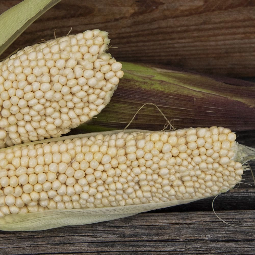 Popcornmajs. Söta, knubbiga kolvar med delad topp, ca 15 cm långa. Mycket ljust cremegula, ovala korn, utmärkta att poppa till fredagsmyset. Kolvarna kan även kokas och ätas hela som vanlig sockermajs. Rikgivande, mörkstammiga plantor, även vacker som prydnadsväxt i samplanteringar och rabatter.
