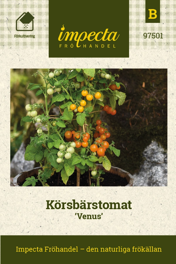 Förkultiveras inomhus i krukor februari-april. Fyll krukorna med 2/3 planteringsjord och 1/3 såjord ovanpå. Håll sådden vid 22-25 gr, efter groning 18-20 gr, så ljust som möjligt. Utplanteras efter avhärdning i växthus eller varmt uteläge när frostrisken är över. Busktomat. Stödjes vid behov. Behöver ej tjyvas.