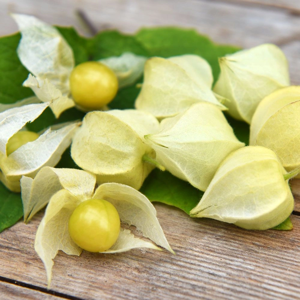 Physalis griseaGula, sötsyrliga runda frukter som omsluts av ett pappersliknande hölje. När höljet gulnar och frukten faller är de mogna. Används färsk, i sylt, till garnering m.m. Kan lagras svalt några veckor eller frysas in.
