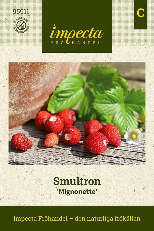 Mignonette är omtalad för sin exceptionella arom och smak. Små röda, söta bär på 3-5 gram hänger ned från plantorna som kaskader. Mycket produktiv under hela säsongen ger lång skördetid, perfekt för hobbyodling. Gourmetbär som används i högklassiga restaurangkök. Bildar ej utlöpare.