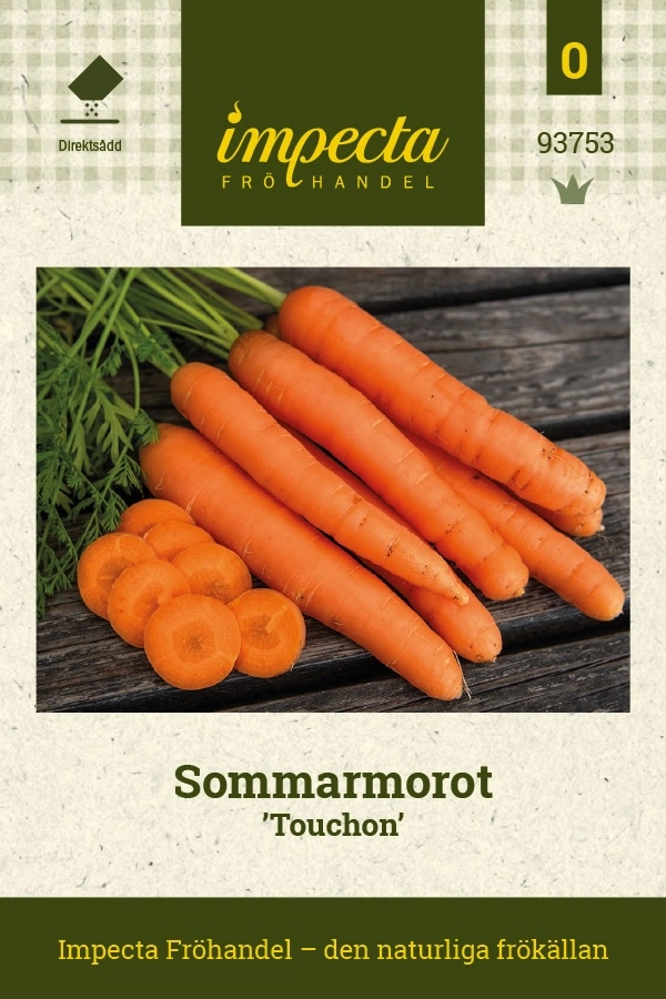 Daucus carotaFrån 1880. Fransk delikatessmorot, ansedd som en av de bästa av Nantestyp. Snabbväxande, släta, cylindriska, orange rötter med söt och krispig smak