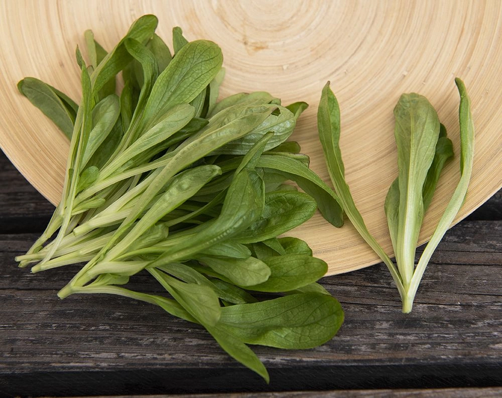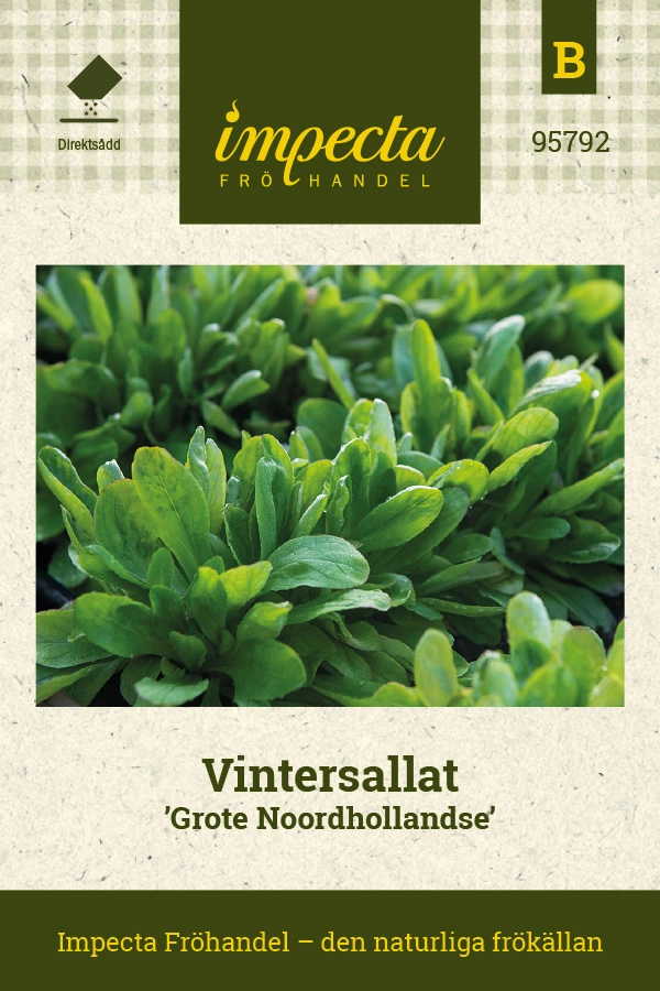Valerianella locustaExtra storbladig med längre stjälkar. Rundade, lansettlika, mörkgröna blad. C-vitaminrika, krispiga och goda till sallader, smörgåsar m.m. S