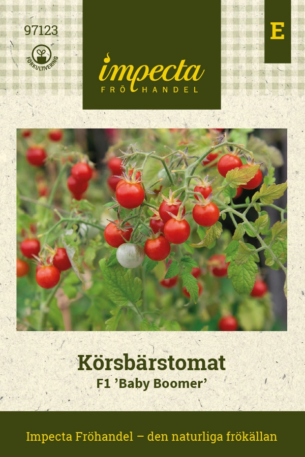 Solanum lycopersicumMedelhög planta med riklig avkastning. Ger mängder av små, söta och goda, röda, runda tomater på ca 7-10 g. Odlas i större krukor, odlingsbä