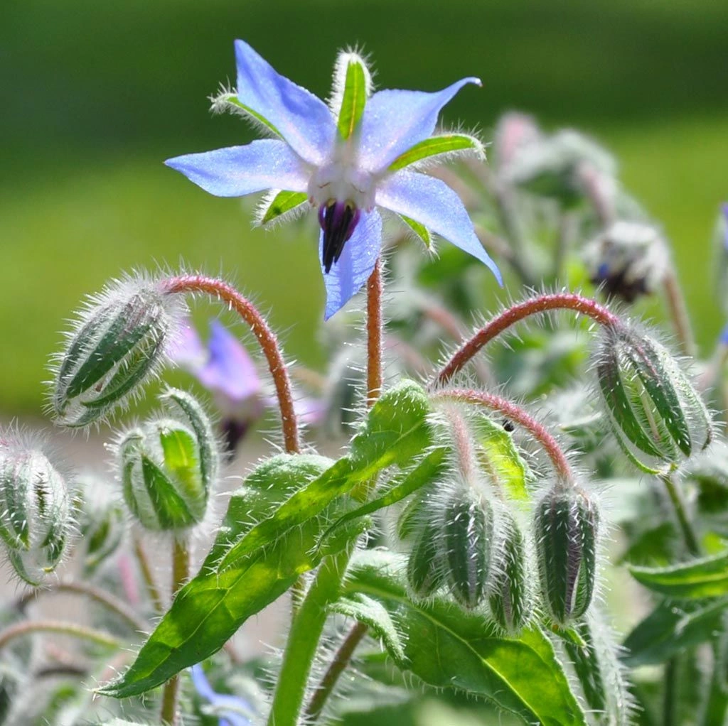 Borago officinalisMed sina himmelsblå kronblad är Gurkört ett vackert inslag i örtagården. De färska bladen är ätbara och mycket goda i sallader eller varför in