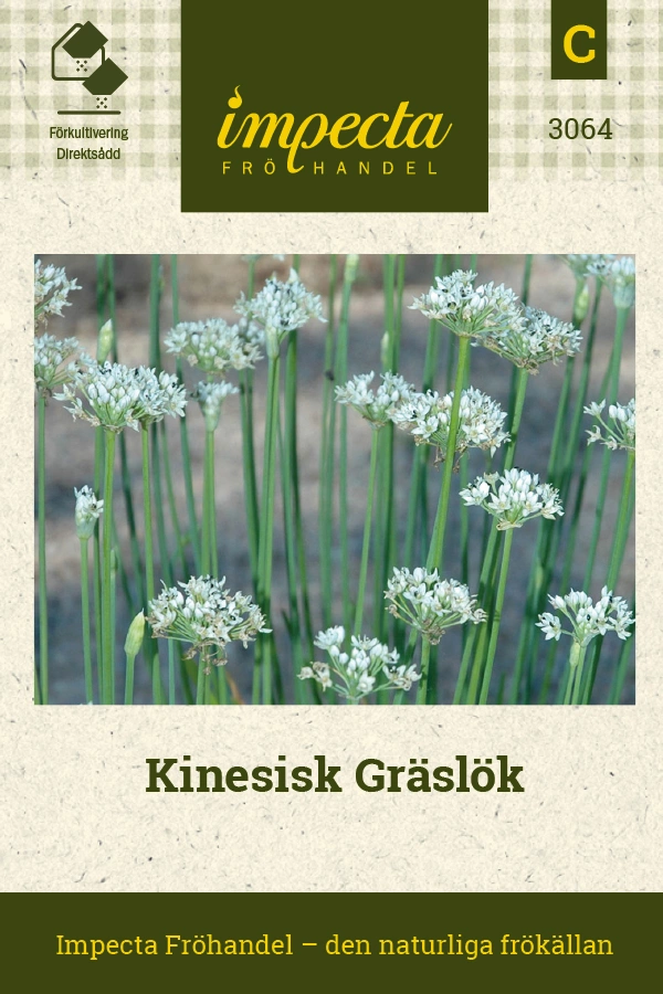 Allium tuberosumSpännande örtkrydda. Liknar gräslök med mild vitlökssmak. Bladen blir något längre och kraftigare än vanlig gräslök. Mycket god i sallader och m