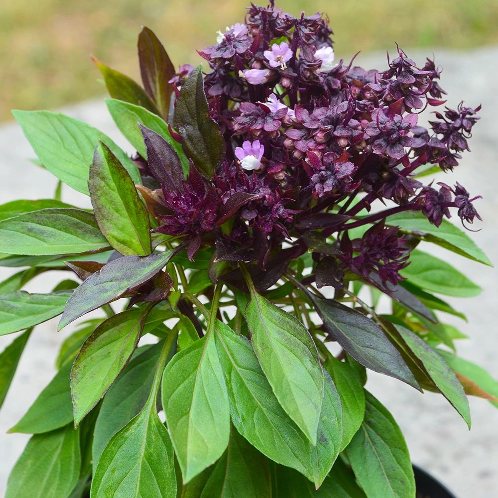 Orientalisk basilika med distinkt lakritsarom. Ger god smak till sallader och kötträtter. Dekorativt växtsätt med purpurröda blommor och ljusgrönt bladverk. Används även som prydnadsväxt. Odlas med fördel i krukor.