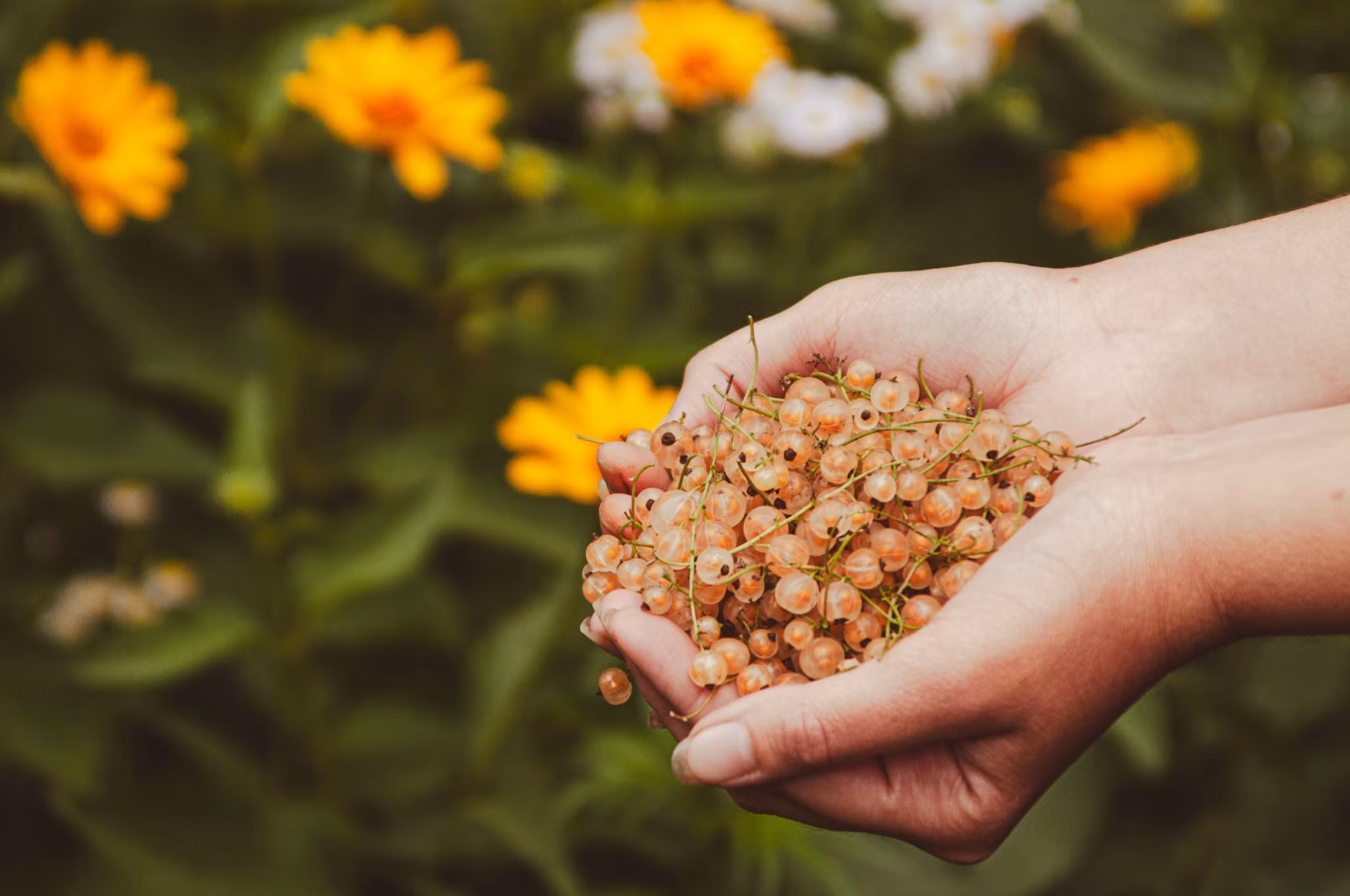 Gulvita stora bär med mild sötsyrlig smak. Gammal fransk sort som ger rikliga skördar av stora långa klaser. Mognar juli. Buskens storlek H