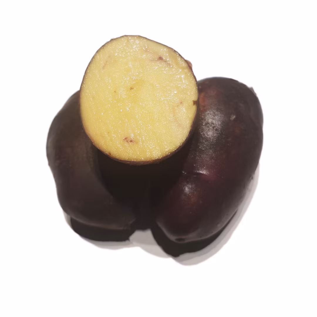 En gammal, mjölig svensk potatissort från 1800-talet, känd för sitt vackra blålila skal, gult kött med lila strimmor, och en intensiv potatissmak. Den är en sen