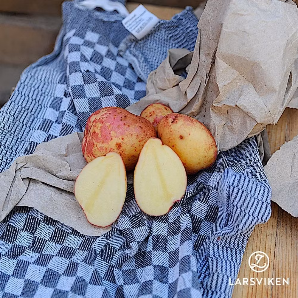 En mycket tidig potatis som redan har hunnit bli en midsommarklassiker. Sorten är mycket lättodlad och passar i de flesta jordar. Vackert ljusrosa skal i kombin